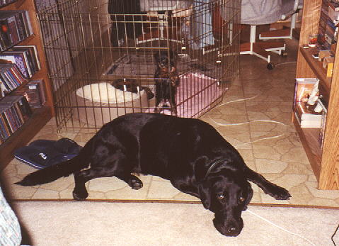 And the pen is getting a bit too small for her, I guess. Or it isn't tall enough. Yes, she can climb out of it now, as you can see...