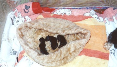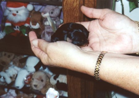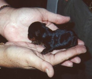 Here are Saffy's first puppy pictures! (June 2000) She's somewhere in there with her brothers. That's Lucy's butt in the far right. I guess she didn't want in for the picture... Isn't she just too tiny?! Awww, she's lifting her head! NobleLadyV@yahoo.com Saffy Furry Friends Vida alá Valerie