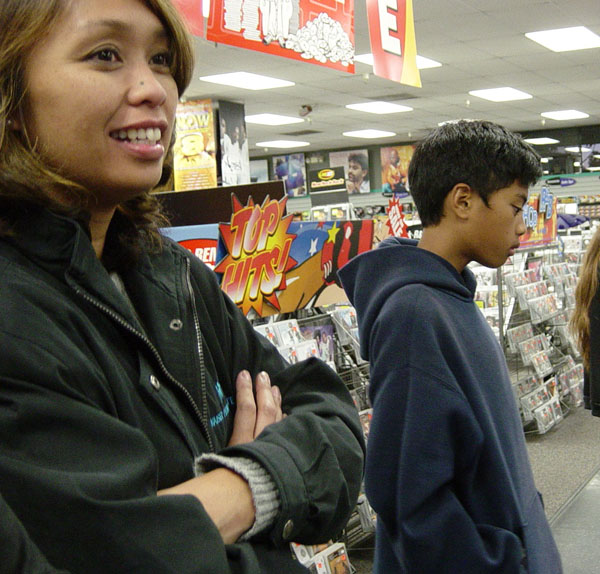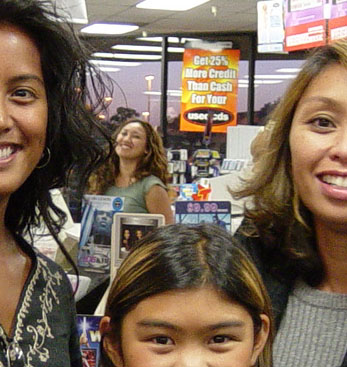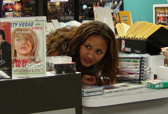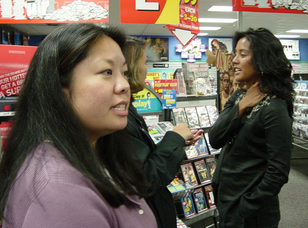 As part of Sheilah's visit this time around, we (Bev, Christine, Sheilah, & I) went to out for sushi. My favorite! We had a bit of a wait, so we took pictures outside... After dinner, we headed out to the Wherehouse to visit Sheena. It was nearly closing time, so we hung out a bit. Melanie, Ryan, and Danielle saw us and came in and we all chatted and waited until the store was closed... We checked out Sheena's place (very clean, very nice!) and just talked until almost midnight...